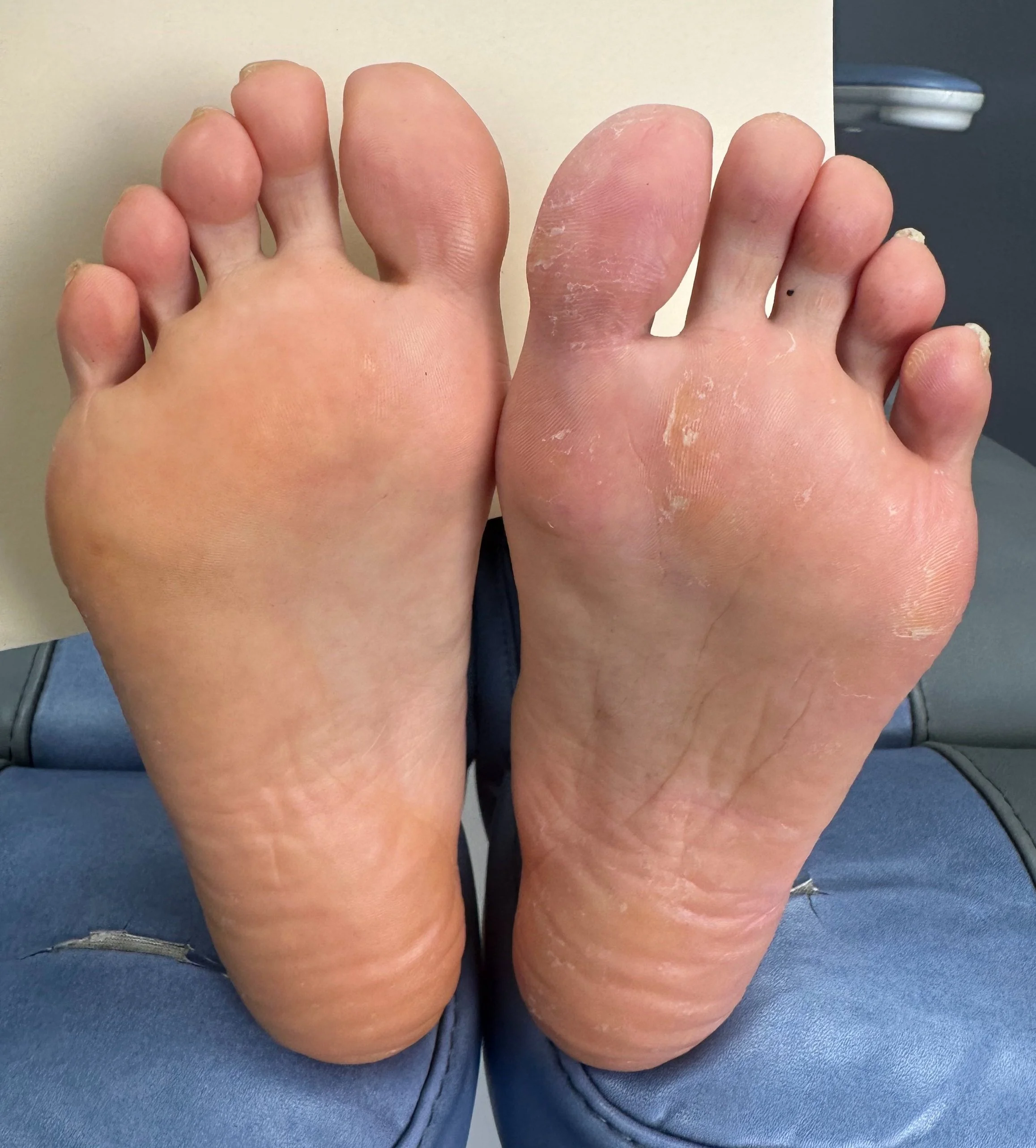 Notice the patient’s right foot, how the skin is a more natural color and the nails are in better condition.